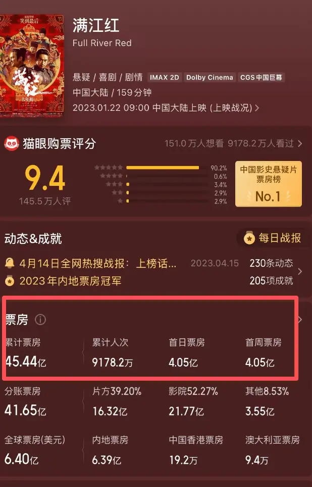 不过,虽然《满江红》备受吐槽,但毫无疑问的是,这一部商业电影是相当成功的。